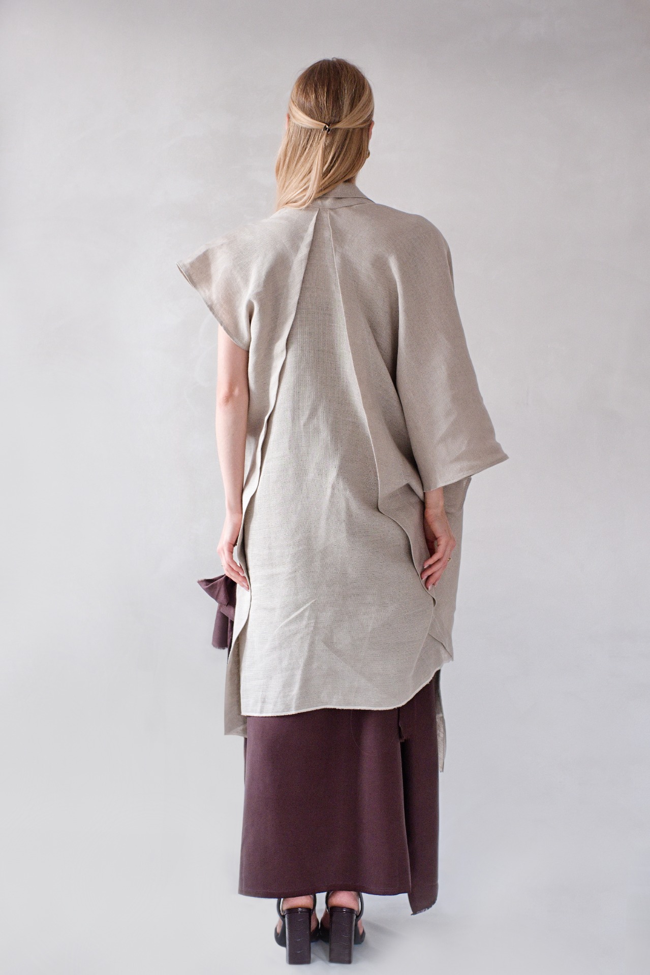 Tento unikátní kousek oživí jakékoliv spodní šaty. Jedná se o asymetrický kousek, který funguje na bázi "ponča" s tím že je jeden rukáv polodlouhý a druhý krátký. Dobře vypadá doplněný i dlouhým svetrem či rolákem. Hlavní dominantou je jeho cípatost a důraz na sochařskou formu sezření. Pokud toužíte být originální je tento kousek pro vás ten pravý.
