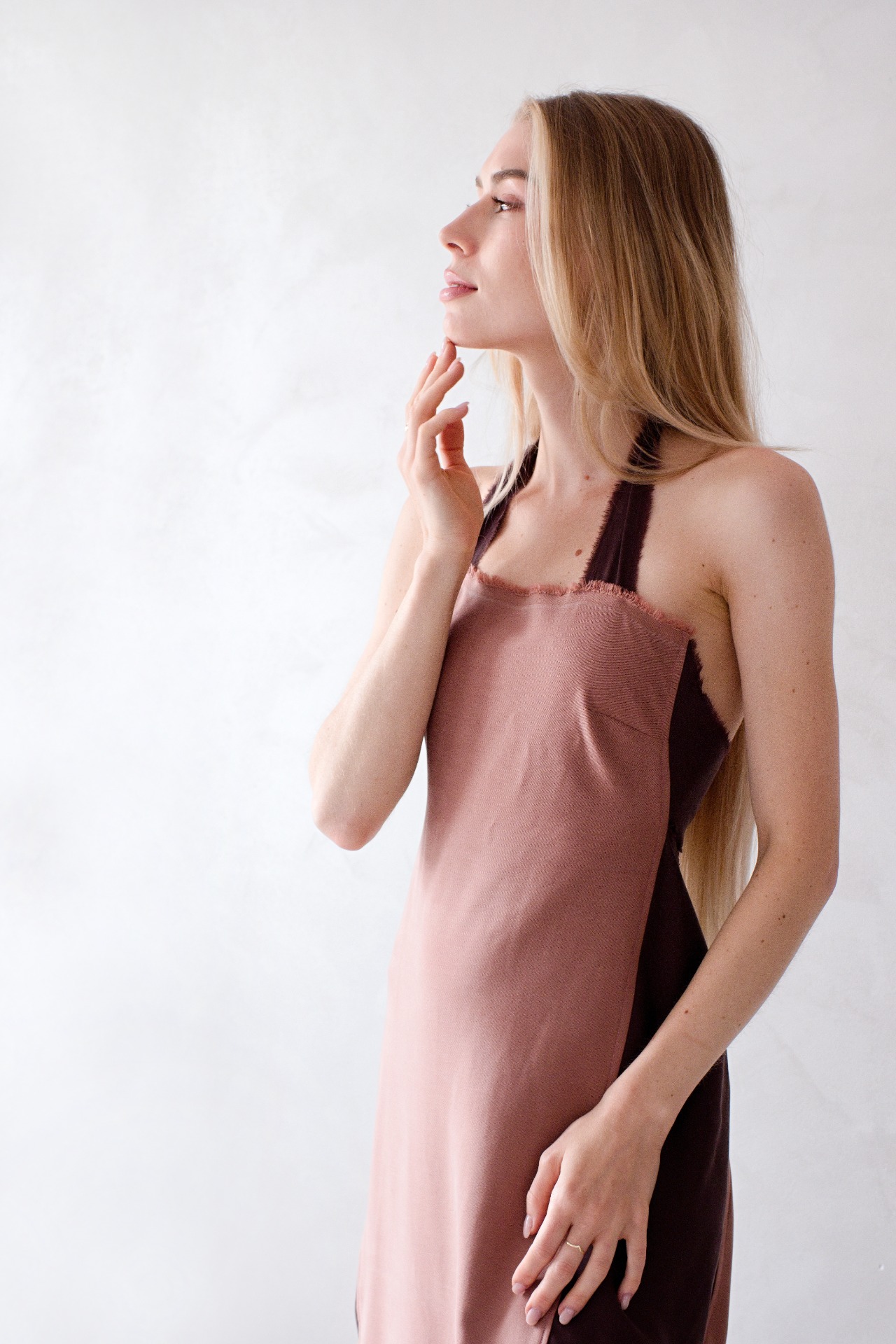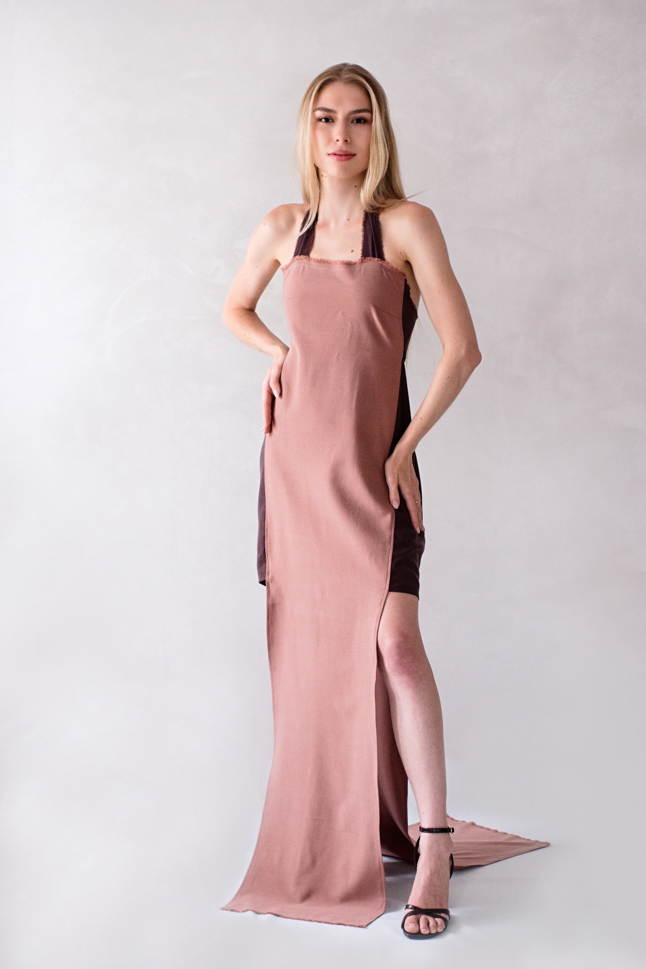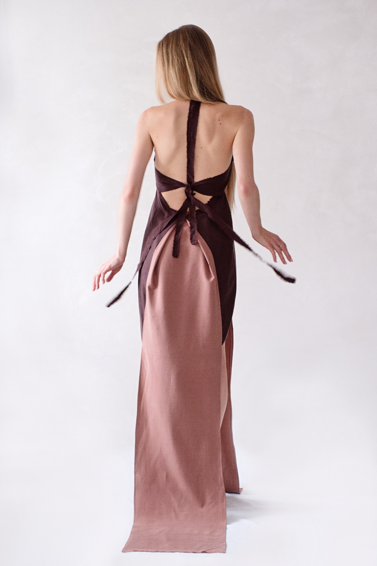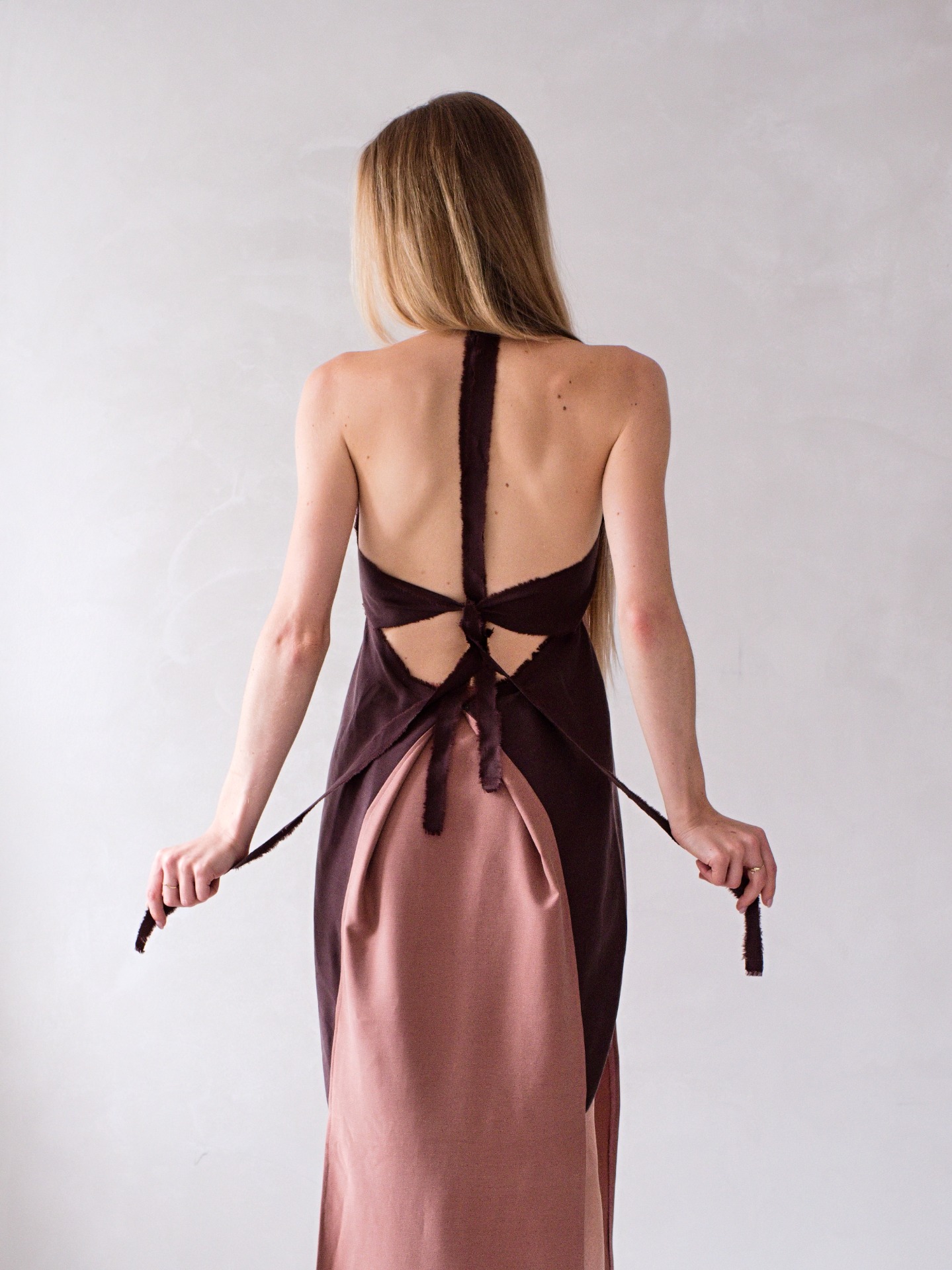 Originální šaty z bukového vlákna s vázáním za krkem a na zádech