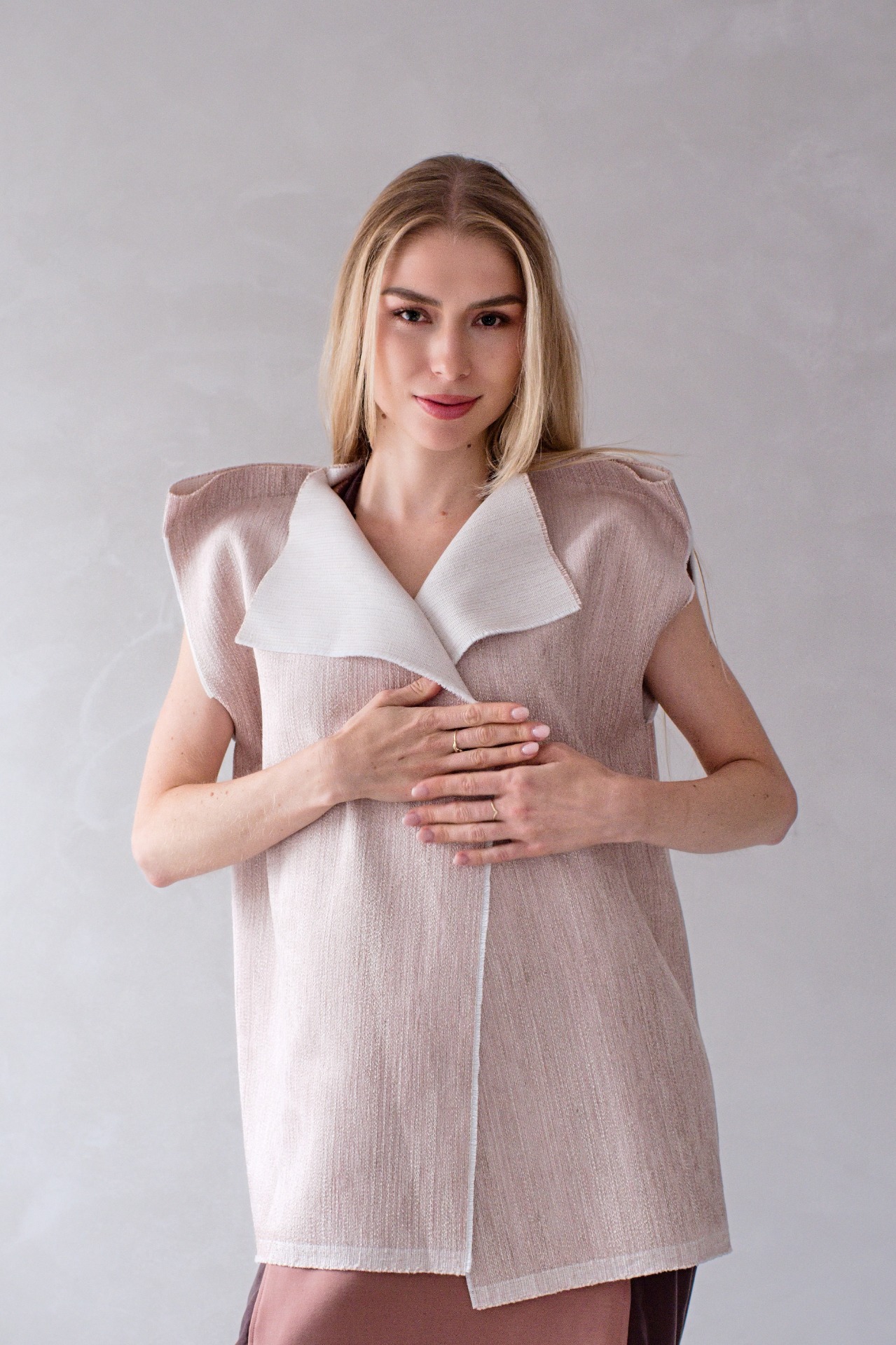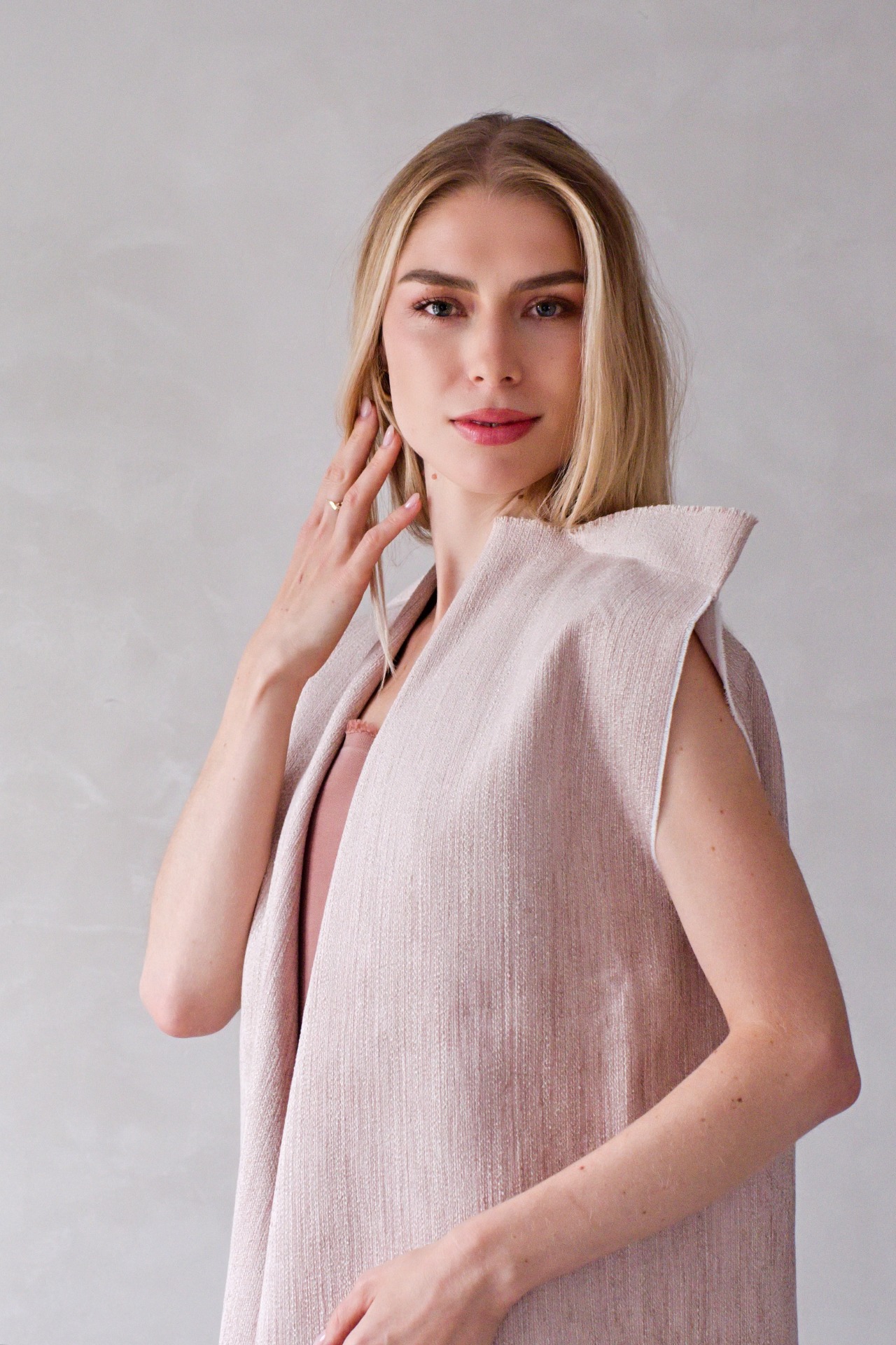 Unikátní materiál zvaný též jako ABBAKA, světle růžové barvy je z rubu zářivě bílý. Materiál na omak měkký a příjemný.
